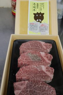 スタッフ野村君からお土産の牛ヒレ肉ステーキ(壱岐牛)