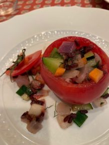 今回は・・・特別に材料も用意しオマールエビのスパゲティ、そしてトマトのオンパレード前菜、黒毛和牛の煮込み。